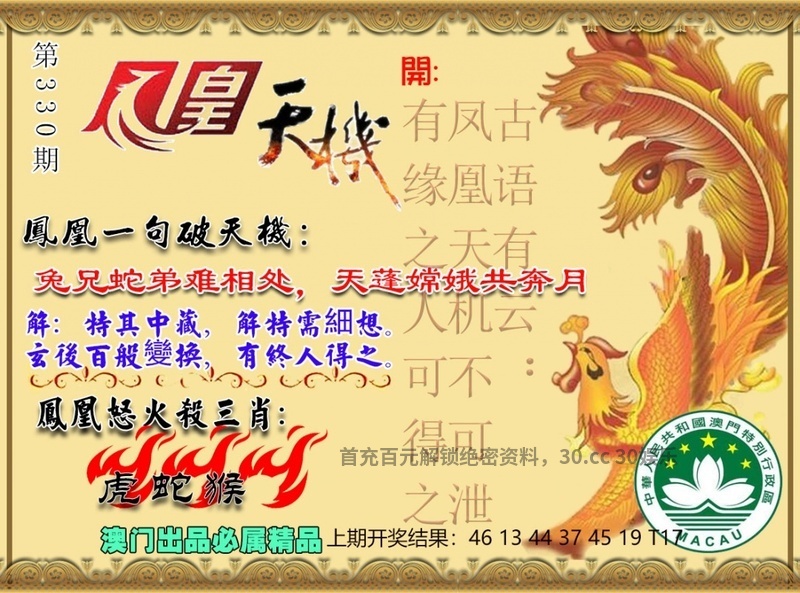 | 330期:五肖 | 牛鸡猴羊虎 | 开:發00中 |