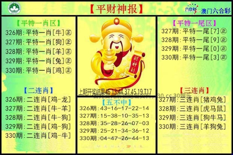 | 330期:二肖 | 牛鸡 | 开:發00中 |
